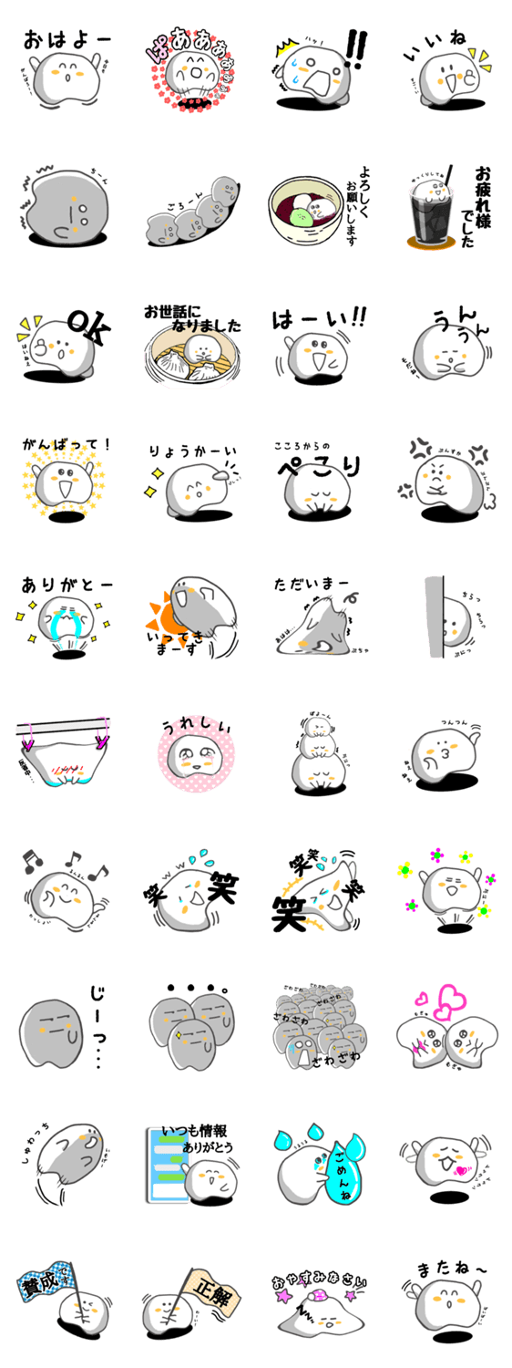 | スタンプ説明 | ほんわか癒し系「ぷにぷにぷに」が送る、日常で使いやすい優しい言葉を選びました。 |