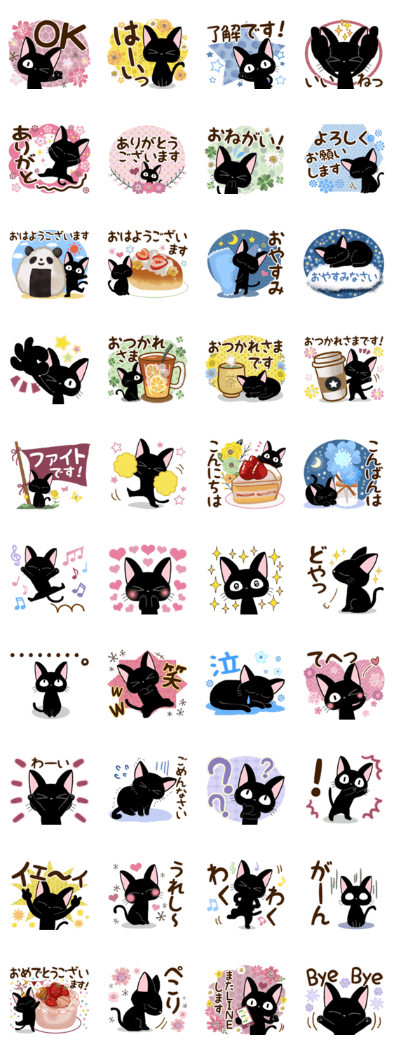 大人かわいい黒猫ちゃんの、たのしいトークにノリ良く返信できるリアクションなどに長けたスタンプです☆日常よく使う言葉や敬語も入ってとっても使いやすくておすすめです