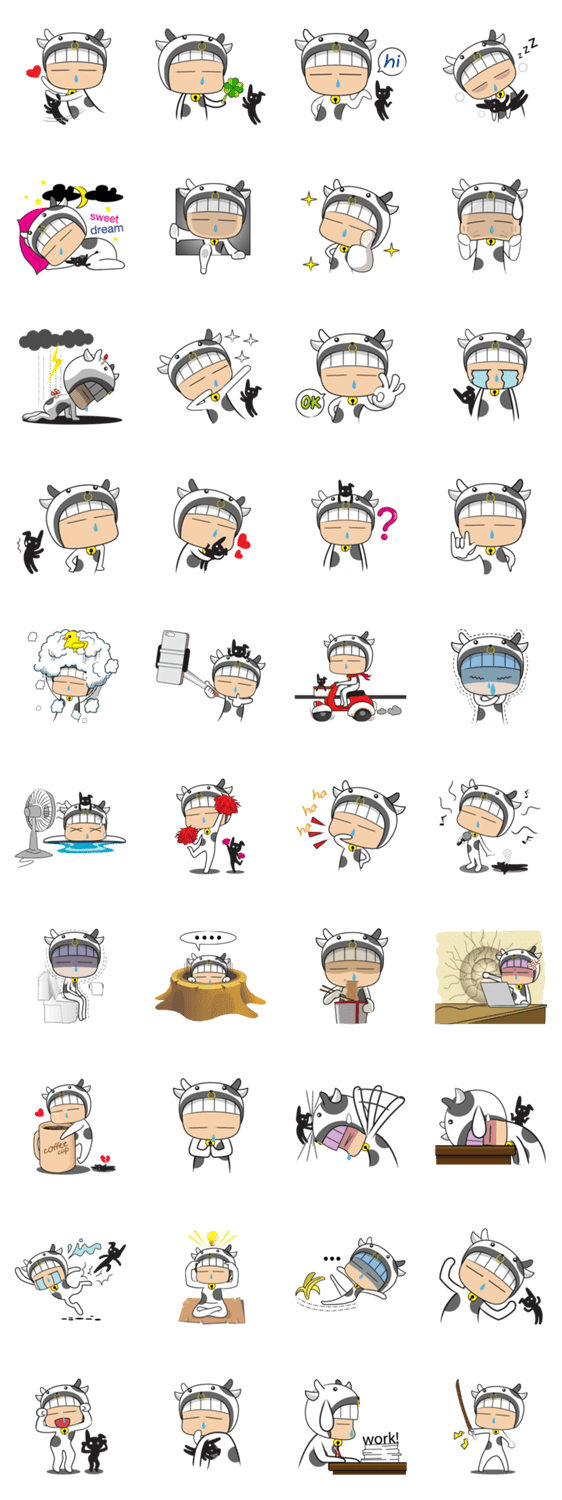 Hello. My name is Crazy cow. I member in Katza and the gang. Nice to meet you all. Enjoy your conversations with her expressive, happy and cute stickers.