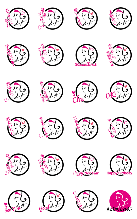 ワクワクドキドキ、おしゃれ大好きなオードリンのスタンプです。