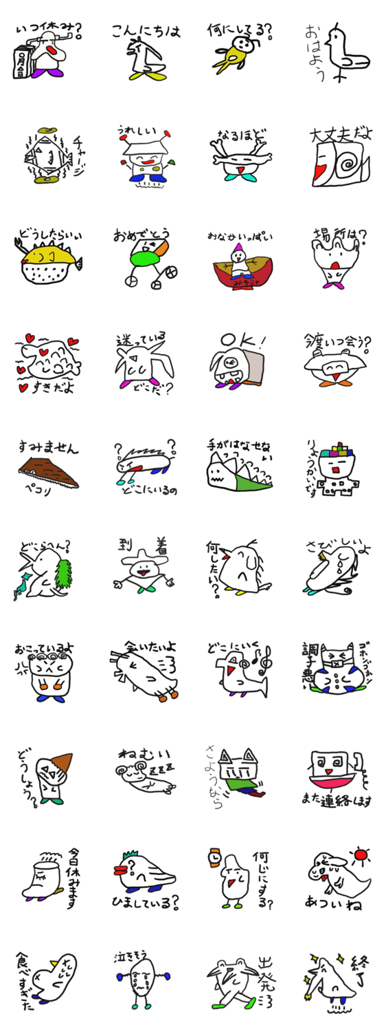 あきどんの仲間たちが日常会話で使いそうな、色々なスタンプたちです。
