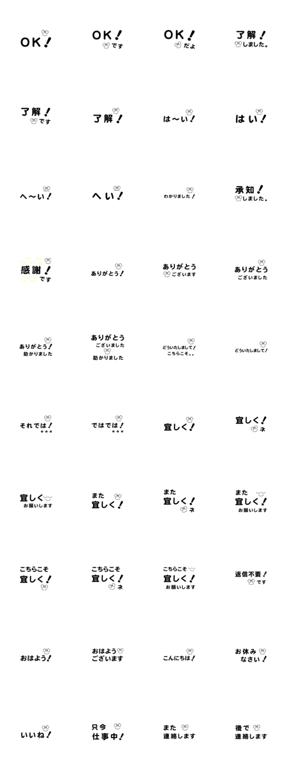 よく使う言葉を言い方を変えて作ったスタンプです。シーンや気分で使い分けができます。
