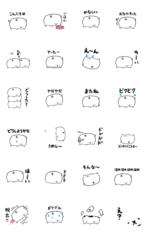 白ネコのあいうえお・・・ってるスタンプ