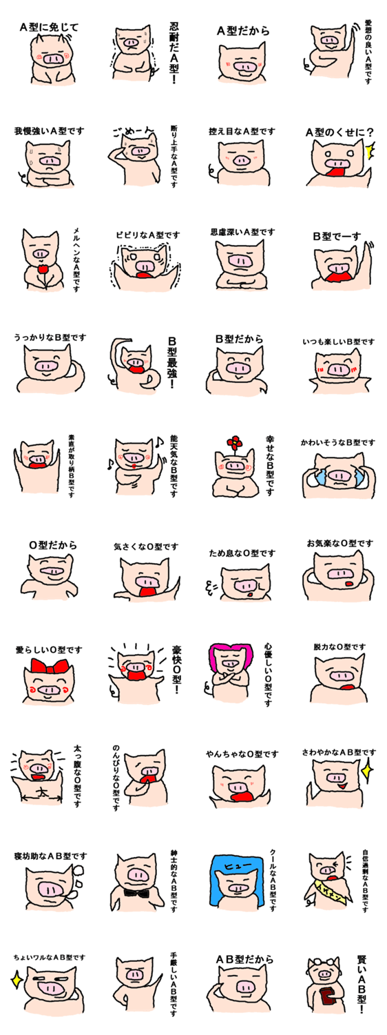 ブタとして生きる 血液型編 -LINEスタンプマニア