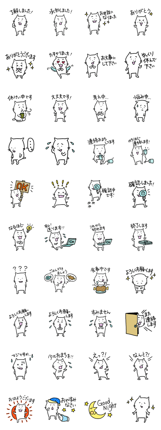 がんばって働くニャン。テレワークにも使えるスタンプ