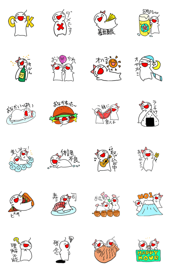 ごはんのお誘いが何より大好きな、うれしそうな子たちのスタンプ。