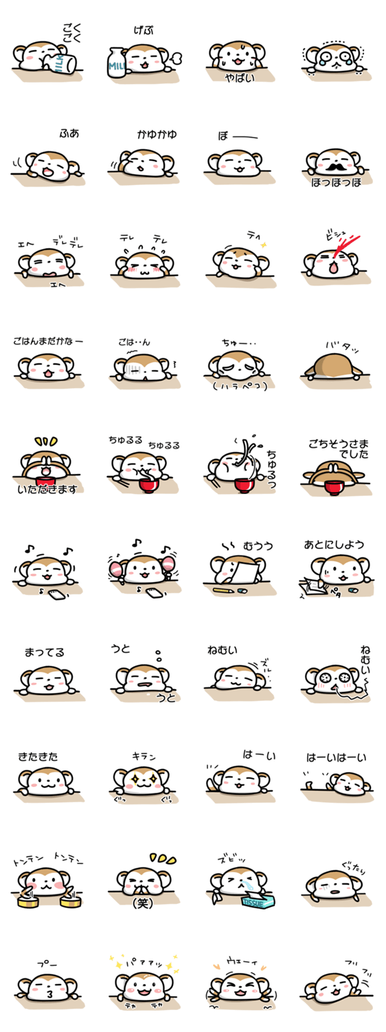 机でだらだらまったりしている、こざるのスタンプです。まったりしたいときにどうぞ。