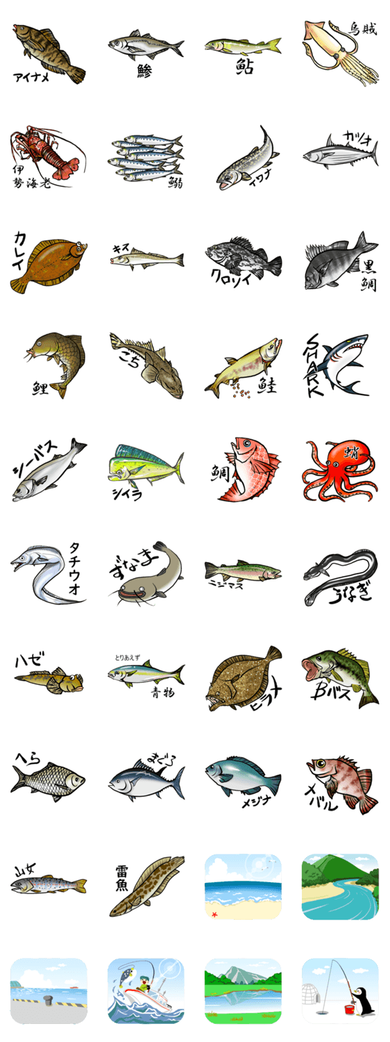 釣り人のための使えるスタンプ。狙いモノ、エリア、釣れた魚の報告にピッタリ!