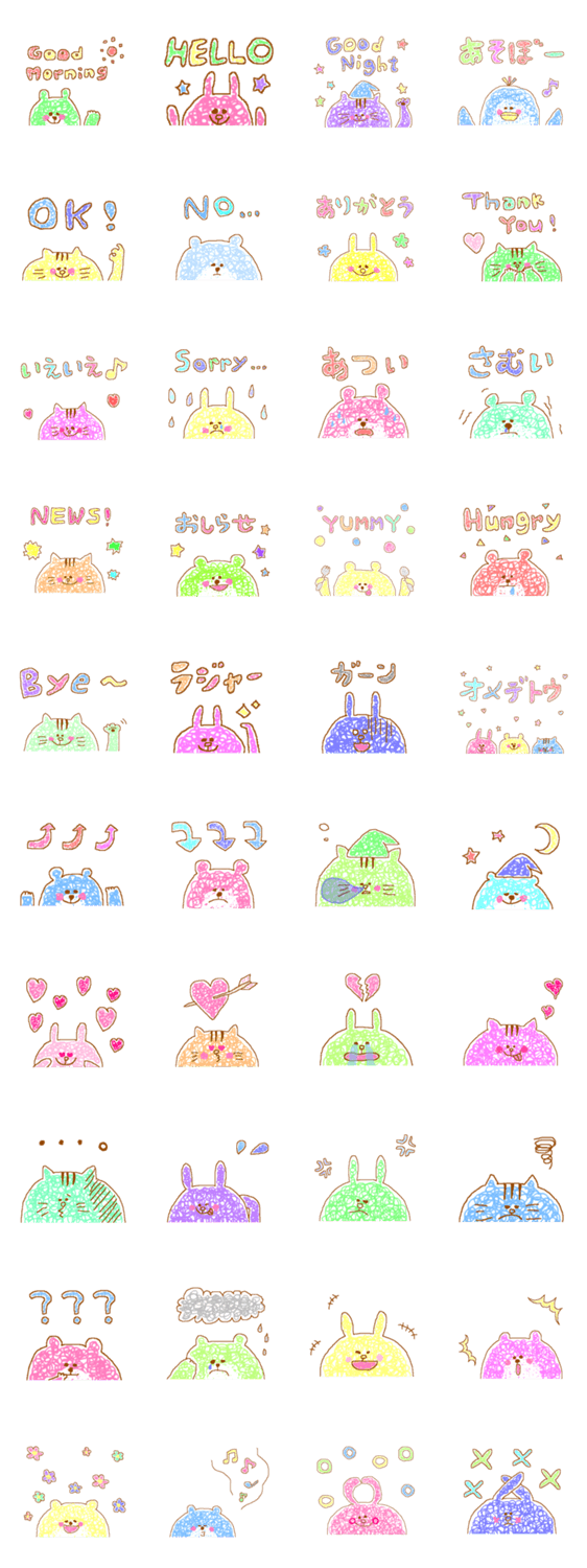 パステルカラーのゆる~いどうぶつたちのスタンプです