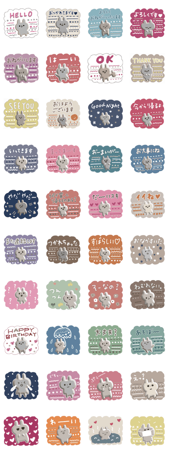 毎日使えるYUKANCOうさぎの挨拶スタンプ♡カラフルで可愛い、ふわふわスタンプ♡くすみカラー/ウサギ/バニー/大人も子どもも