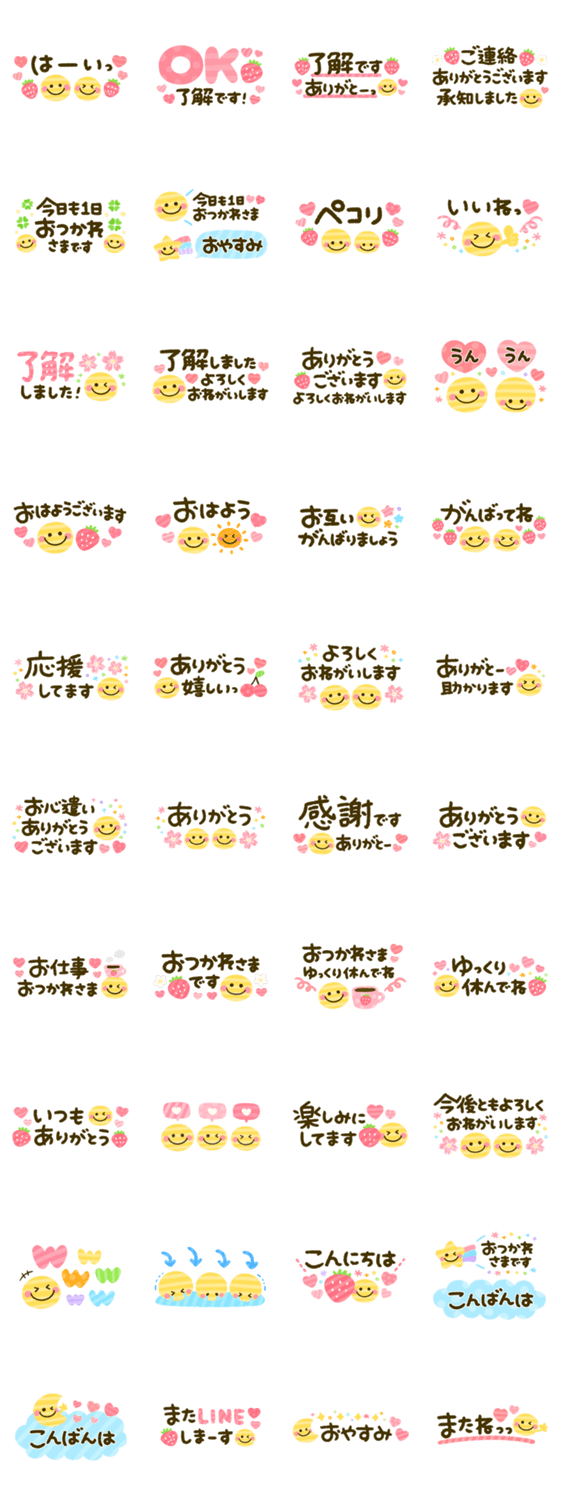 よく使う言葉を厳選した大人可愛い春色スマイルスタンプです♪ トークを埋めない省スペース仕様♡