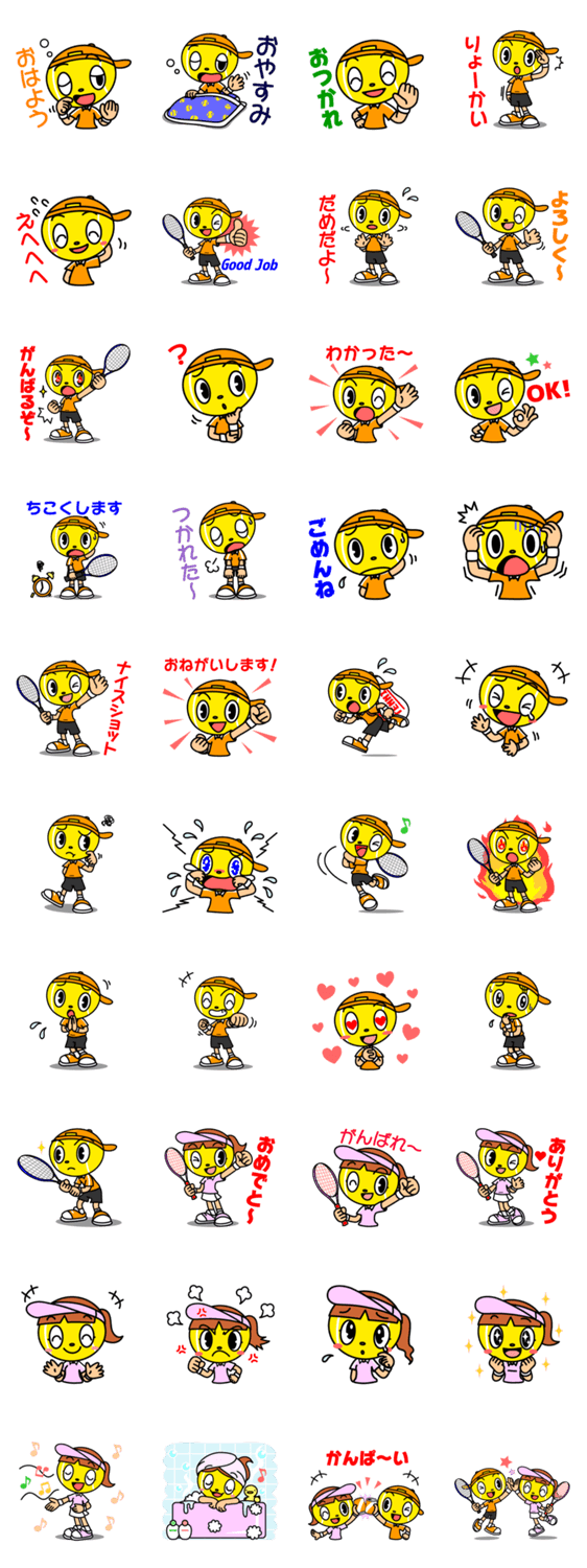 埼玉県川口で話題のテニススクール「テニススタジオ」のメインキャラクター「テニスタくん」と「スタ子ちゃん」のスタンプです。