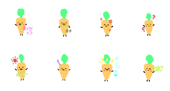 LINE Creators Studioでつくったスタンプです。人参好きのこどもの手書き文字です。
