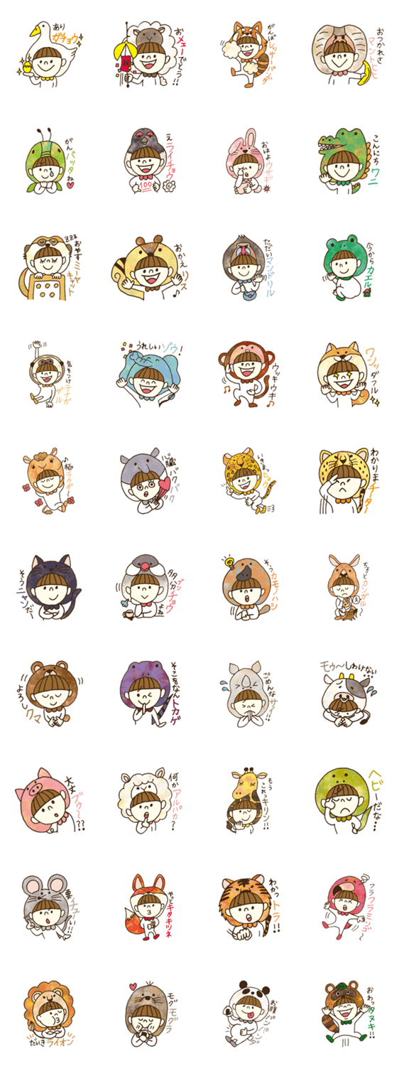かぶりものシリーズ第二弾!動物にちなんだダジャレのかぶりものをした女の子です。心がほっとするスタンプです。