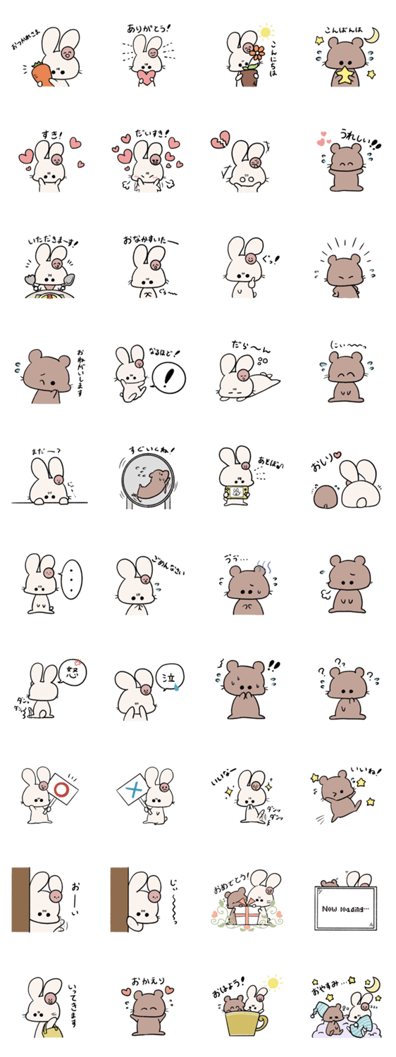 不機嫌ながらも感情豊かなうさぎとビビりハムスターのスタンプです。