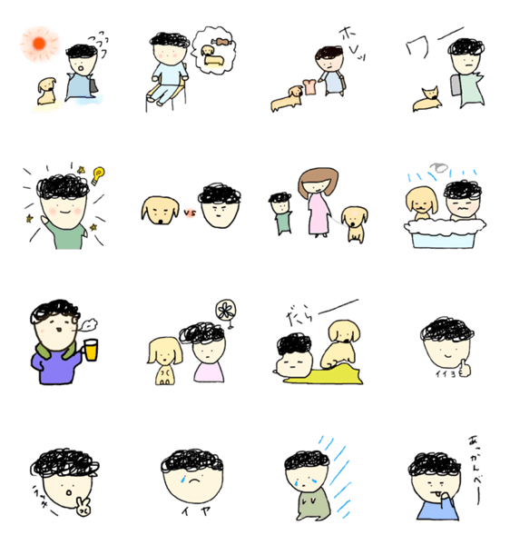 もじゃ君と犬さんとの激闘の日々がスタンプになりました。