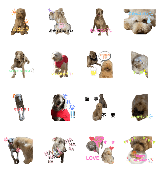 ワイマラナーのセナちゃんとミディアムプードルのベントリーくんのスタンプです♡
