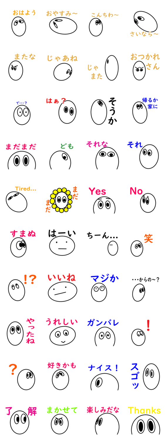 タマゴの日常を描いたスタンプです。毎日の挨拶用です。