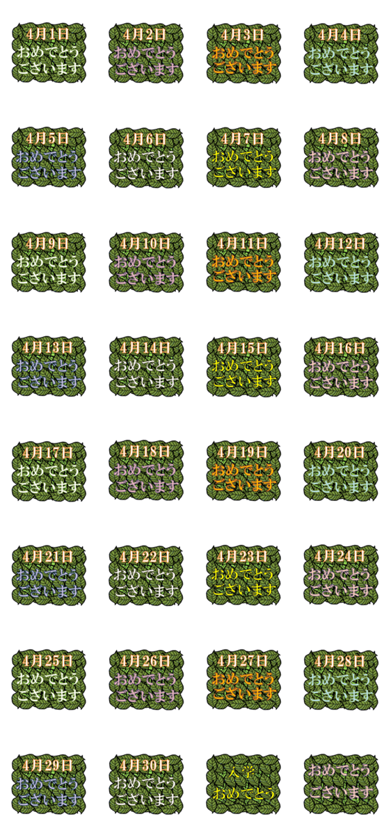おめでとう/葉っぱ<4月> -LINEスタンプマニア