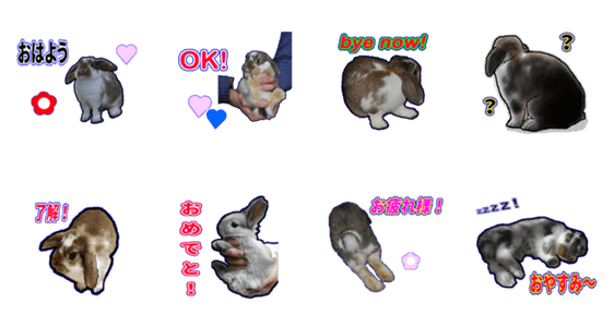 かわいい我が家のウサギたちのスタンプです。 ウサギ好きのあなたへ! 【作:bighand】