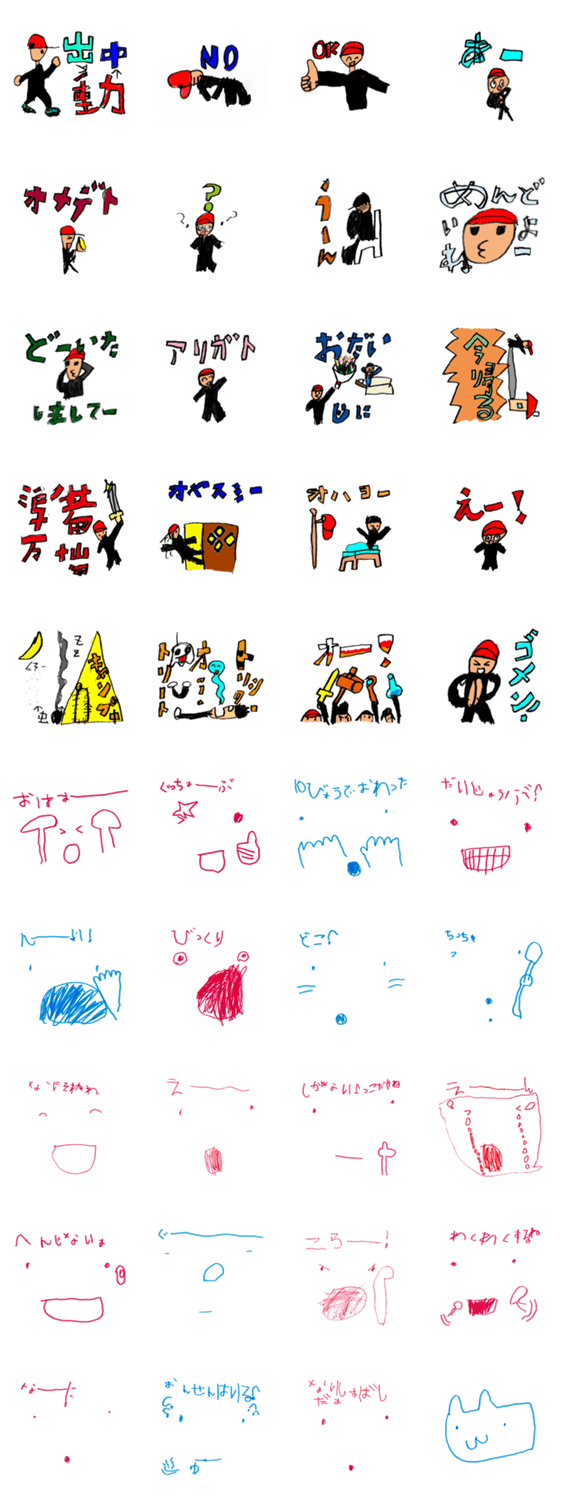 息子がスタンプを作りたい!と絵を書いたのが溜まったので形にしました。 意外と使える?!素朴な魅力をお楽しみください。