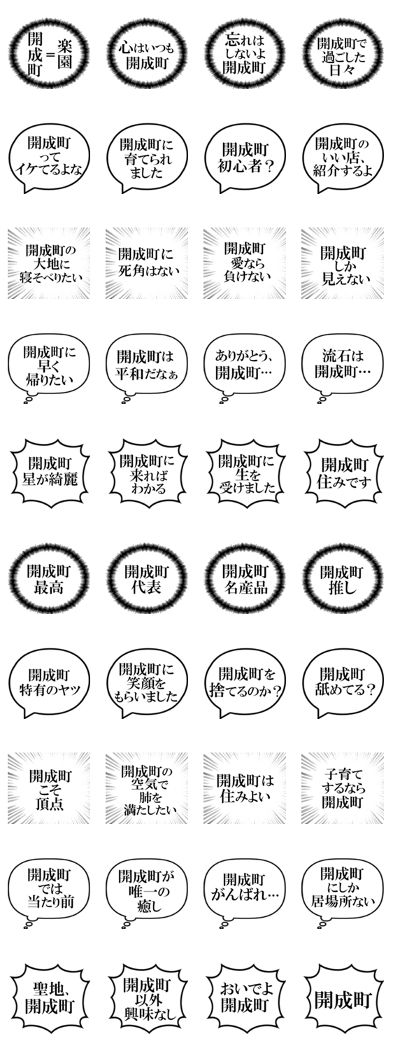 神奈川県開成町民もそうでない方も使える、愛に溢れた吹き出しスタンプです。