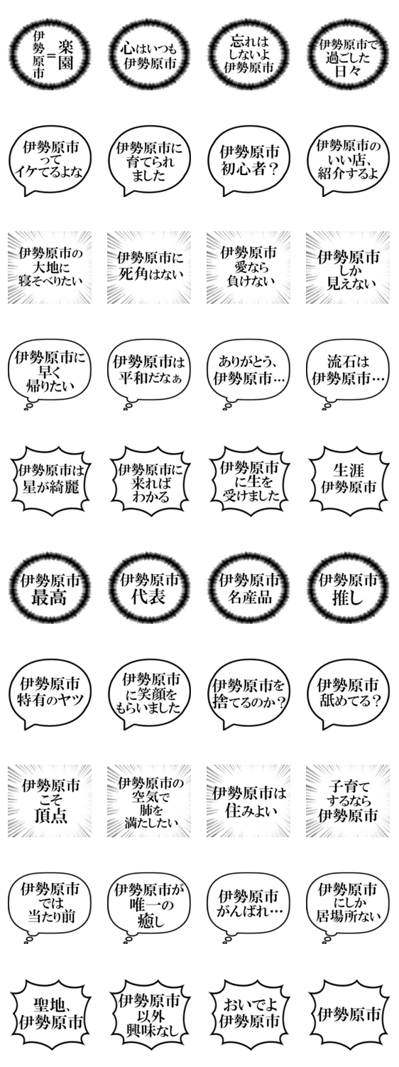 神奈川県伊勢原市民もそうでない方も使える、愛に溢れた吹き出しスタンプです。