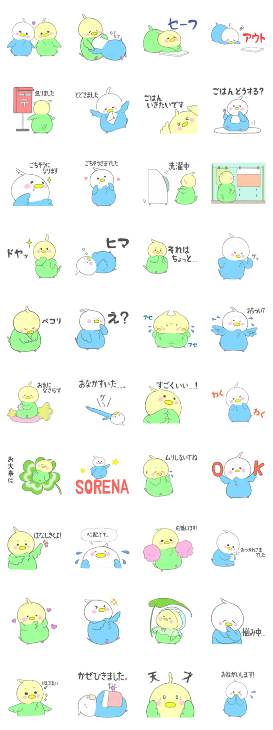 スタンプ説明 インコがモデルのオリジナルキャラクターです。