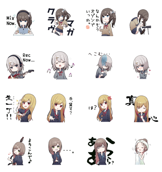 うさぎタウン公式LINEスタンプ第一弾♪ 歌わないガールズバンド「うさぎタウンband(仮)」メンバーの他愛のない日常、そして――時々お風呂。