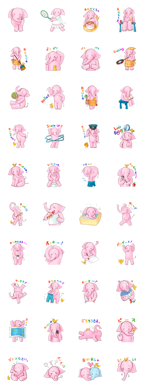 ピンクぞうさんと小鳥 -LINEスタンプマニア