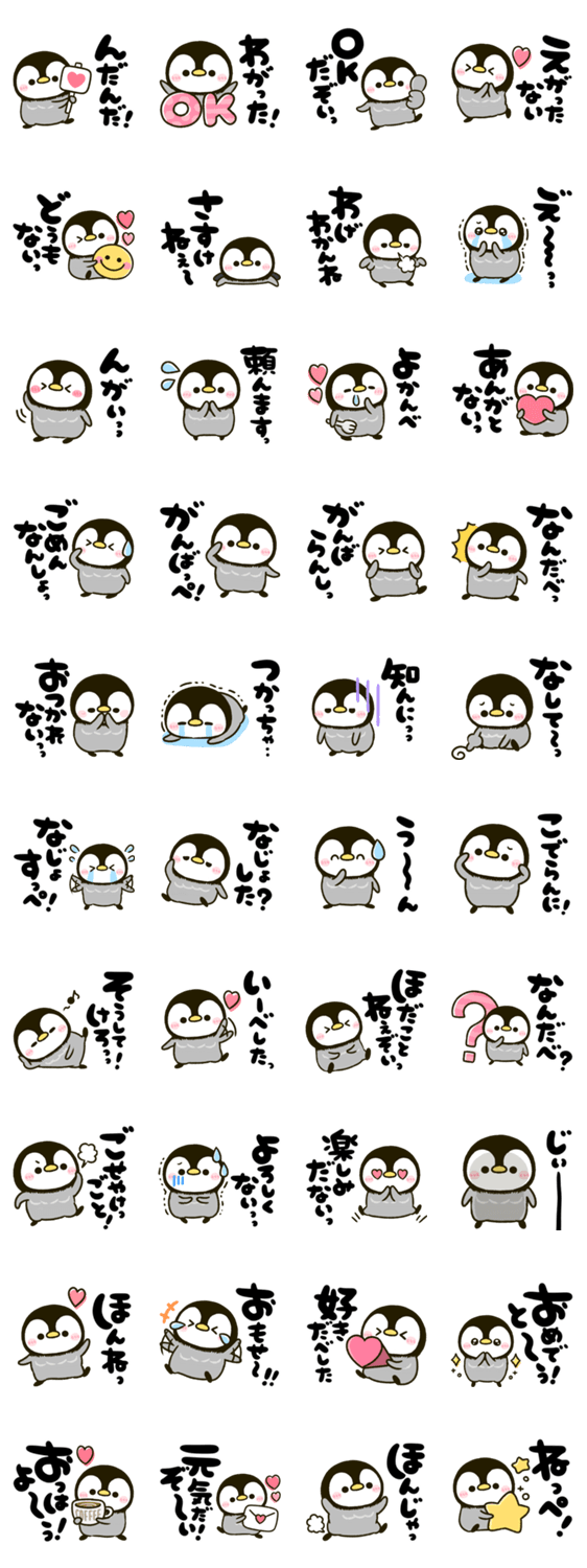 ぴよたぬ方言♡福島県の方言で日常的によく使う言葉を厳選した可愛いペンギンの手書き筆文字スタンプです♪
