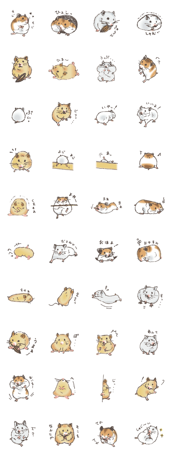 ゆるかわいい〜手書きのハムスタースタンプ詰め合わせです。