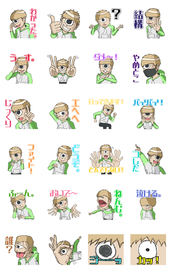 | スタンプ説明 | マッシュのおばけ一つ目くんがパーカーを着て登場!妖怪らしさと可愛さを備えたかっこいい男の子を見届けろ!マスク姿やおいでポーズ、あいさつ以外の用途にも使えるぞ! |