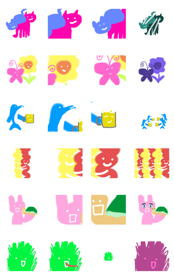 ネコと猫。花とちょうちょ。イルカとビール。マスタードとケチャップ。うさぎと亀。さいごは草です、