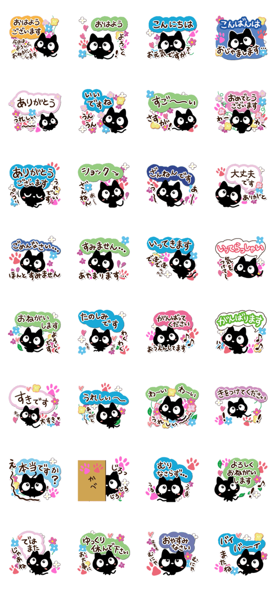 通常の言葉に気持ちが伝わるよう、文字を追加した『クロネコすたんぷ』。丁寧な言葉を集めているので一回で気持ちが伝わります。『クロネコすたんぷ』の絵文字もあります。