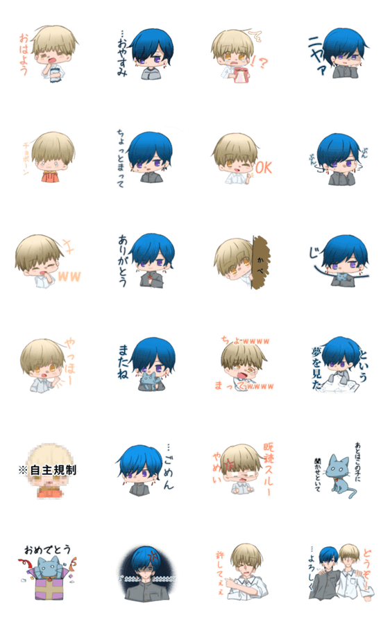 学ラン青髪くんとそのお友達 金髪くんのほぼデフォルメスタンプです。