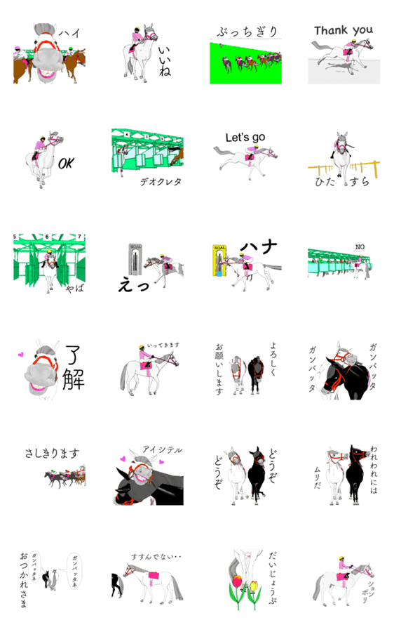 スタンプ説明 リアルな3Dの競走馬が競馬場でご挨拶