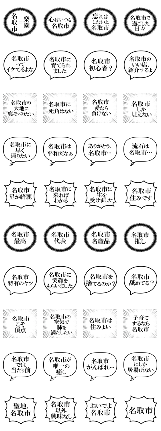 宮城県名取市民もそうでない方も使える、愛に溢れた吹き出しスタンプです。