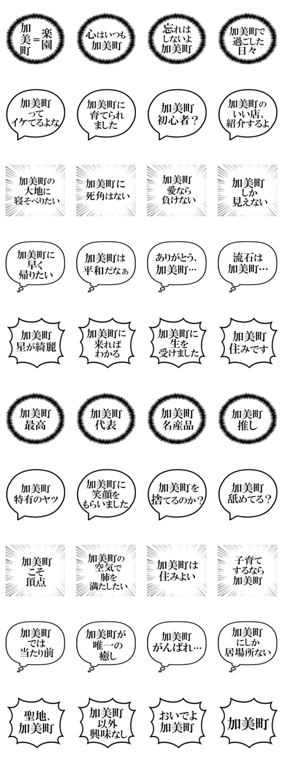 宮城県加美町民もそうでない方も使える、愛に溢れた吹き出しスタンプです。