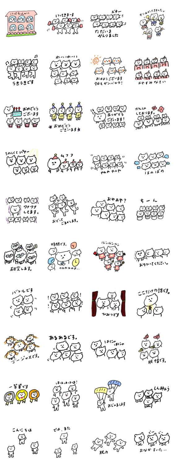 白ネコのあいうえお・・・ってるスタンプ