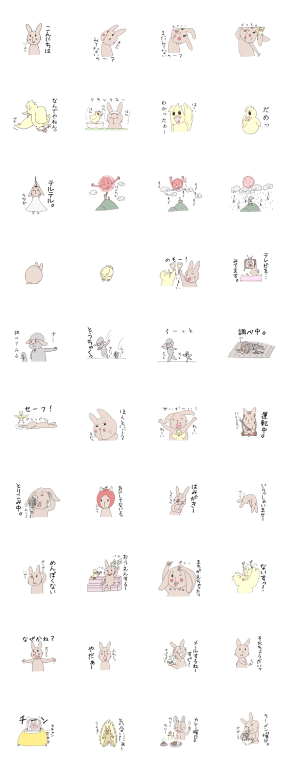 | スタンプ説明 | ウサギのうー太郎とそのベストフレンド、ひよこのトットを交えての日常。ほんわか、時に激情な気持ちをさりげなく伝えられるスタンプ、第二弾です。 |
