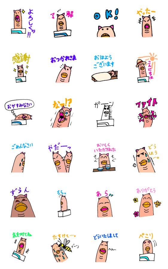 | スタンプ説明 | ティッシュの箱から出てきたあいつは、キモ可愛いあいつ。その名はソーセージくん!【作・はるとまん】 |