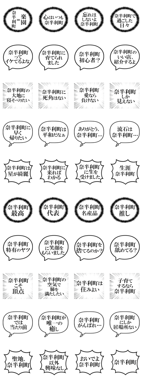 高知県奈半利町民もそうでない方も使える、愛に溢れた吹き出しスタンプです。