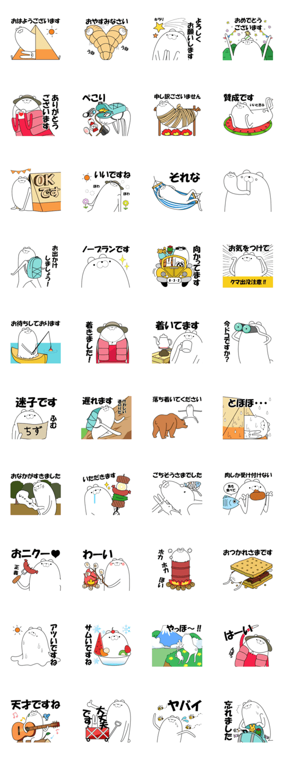 スタンプ説明 太ましいクマがアウトドアに挑戦!