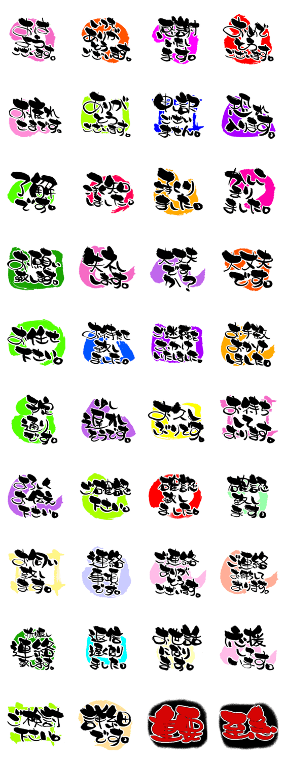 | スタンプ説明 | 元気が出る筆文字シリーズ お仕事でもつかえるシンプルな敬語のスタンプです! |