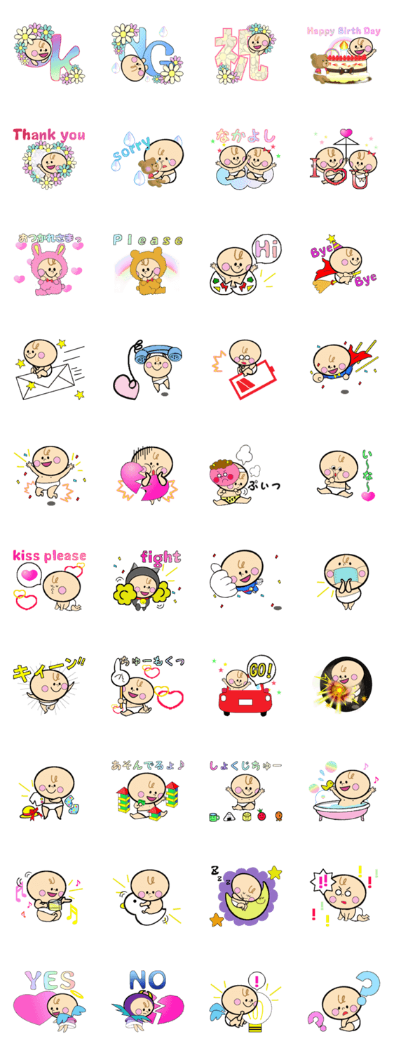 かわいい!たのしい!おもしろい!キュートな赤ちゃんのスタンプです!喜怒哀楽からあらゆる気持ちを表現できます。忙しいママや気持ちをやんわり伝えたい方にもオススメです!