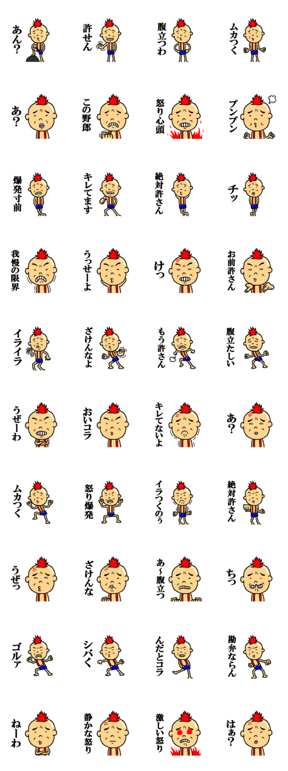 さまざまな怒りの表現を40パターン集めたスタンプです。存分に怒って下さい。