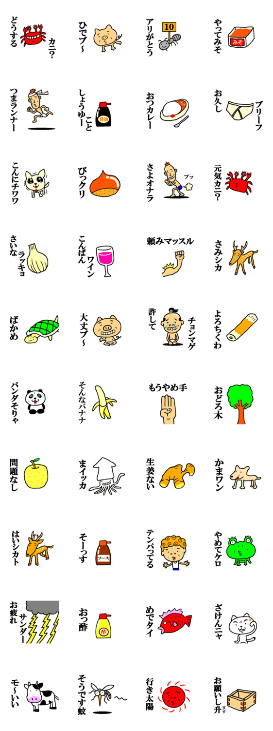 ダジャレだけで40パターンある緩い感じのスタンプです。ある意味インパクト大です。