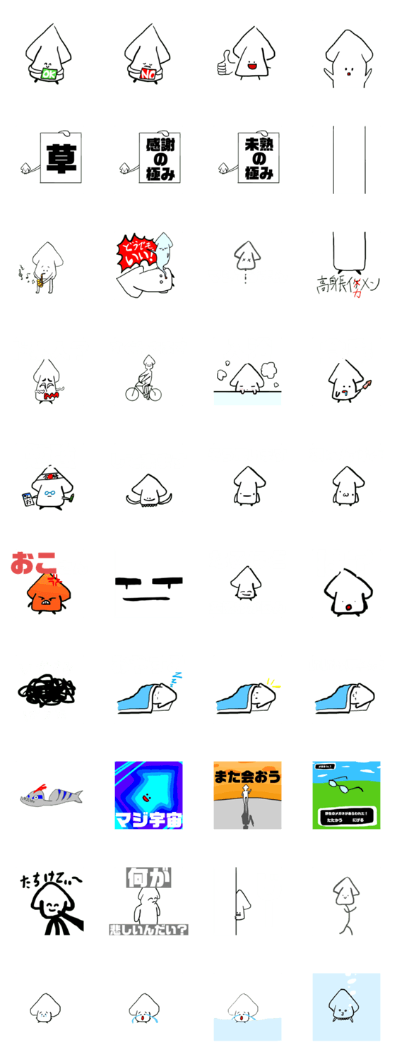 それなりに使えるスタンプから全く使い所の分からないスタンプまで。いかさんを知らない画面の前のちびっこ達、TikTokを見に行きなさい。