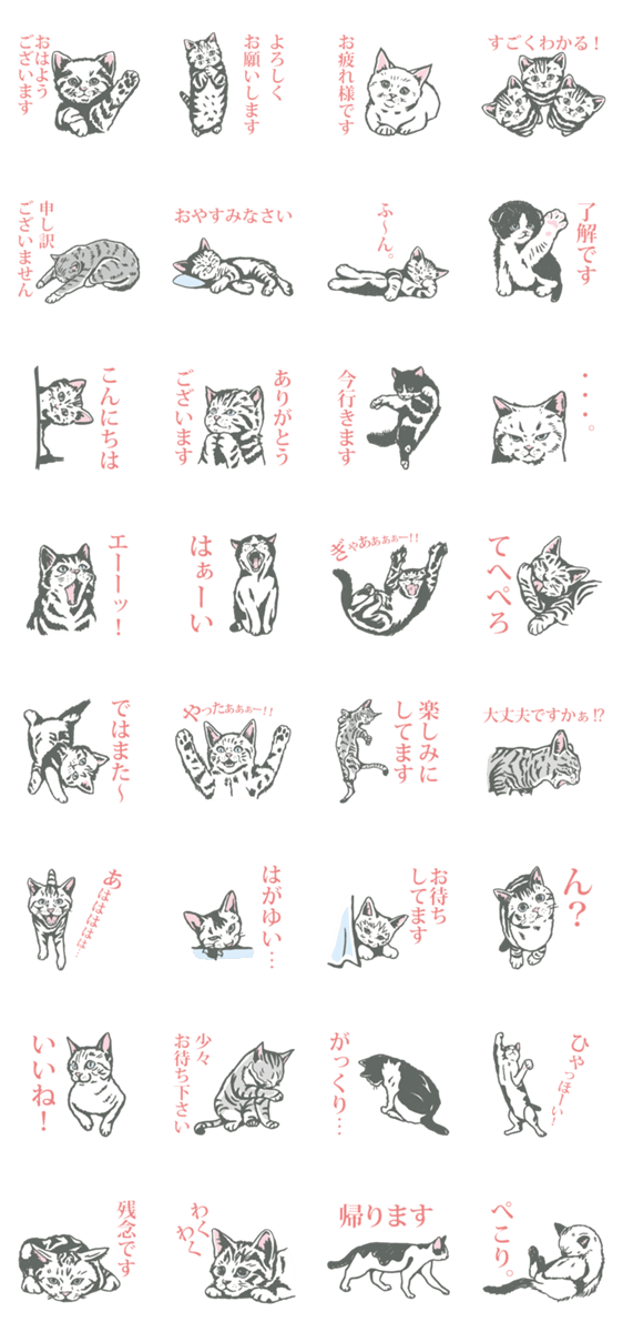 リアルでおしゃれな大人っぽい猫の線画シリーズです。 敬語言葉使いで、仕事や目上の人にも使えます。